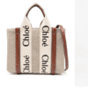 ✅ Material: Beige linen with dark brown calf leather trim